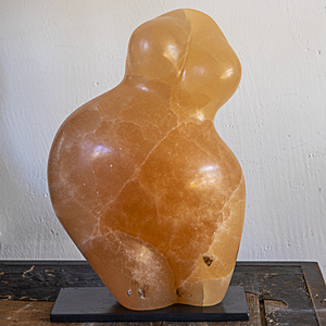 2020het ideale vrouwen figuur in bruine albast op sokkeltje van hout . Afmetingen inclusief sokkel